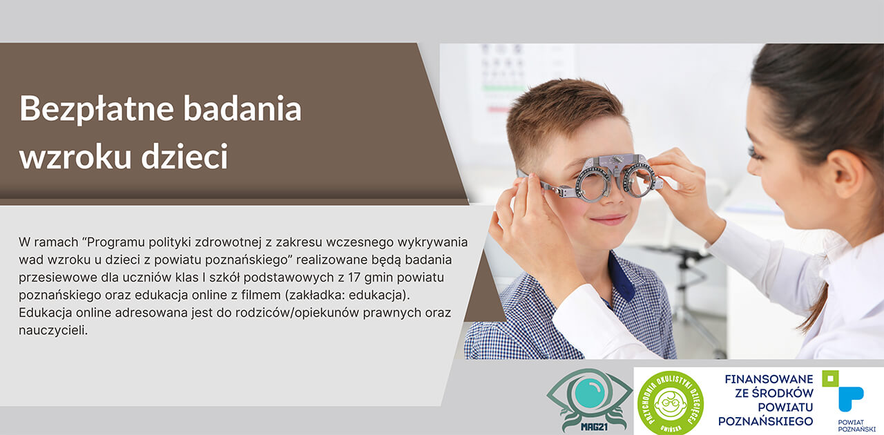 Poradnia okulistyczna dla dzieci prowadzona jest przez prof. dr hab. n.med Andrzeja Grzybowskiego w ramach kontaktu z NFZ
